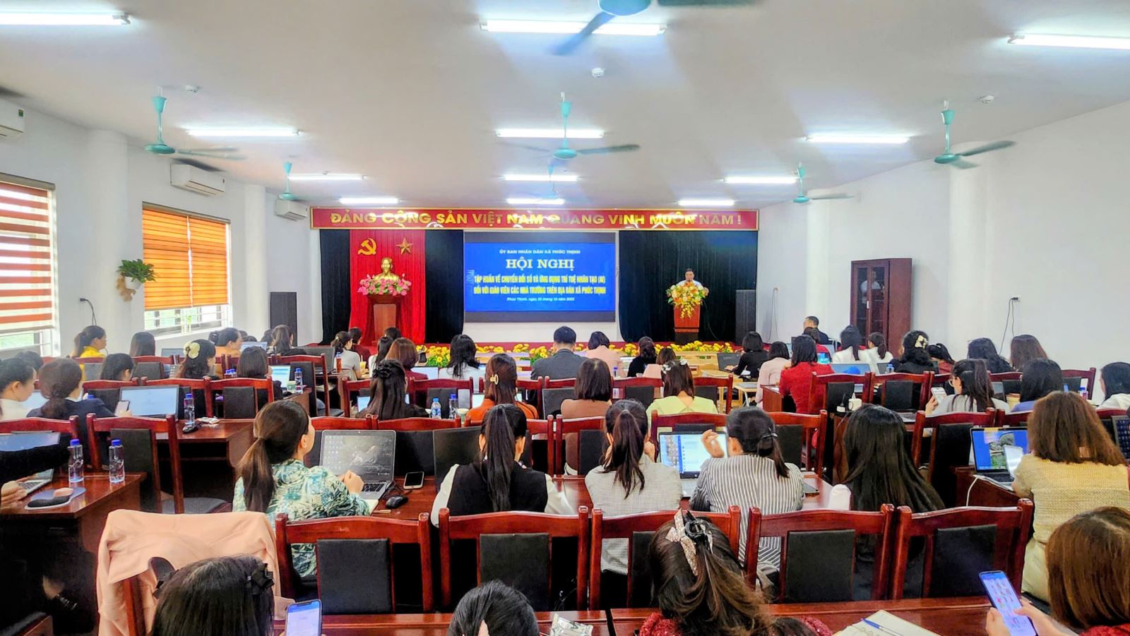 Một buổi tập huấn về công nghệ và giáo dục, nơi các giáo viên đang tham gia để nâng cao kiến thức và kỹ năng. Ảnh: Fermat Tech