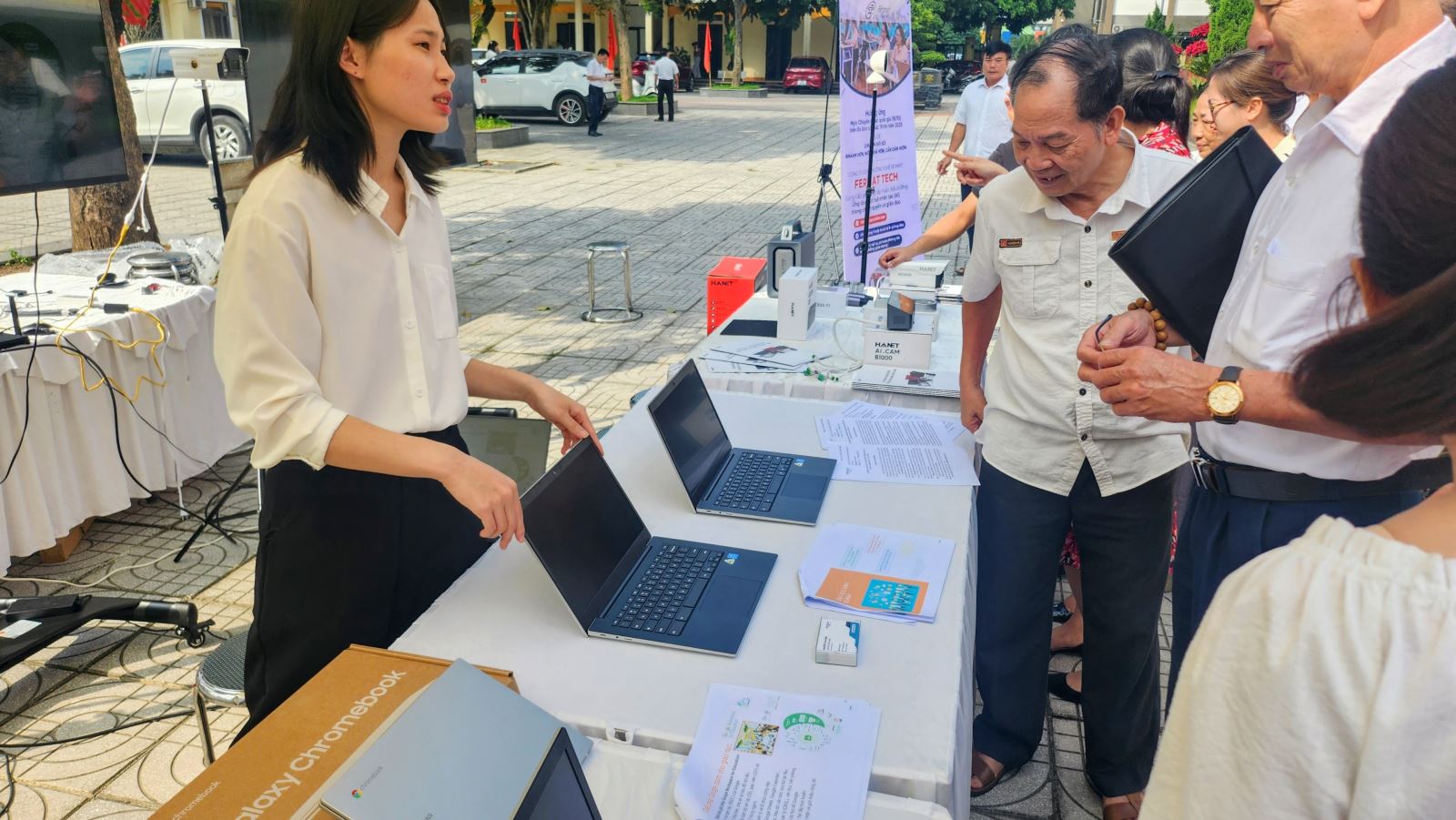 Bên cạnh phần tham luận, các đại biểu còn có cơ hội trực tiếp trải nghiệm các sản phẩm công nghệ giáo dục tiên tiến tại gian hàng của Fermat Tech. Với vị thế là Đối tác chính thức của Google tại Việt Nam, Fermat Tech đã giới thiệu nền tảng dạy và học toàn diện Google for Education (GfE). Giải pháp này giúp giải quyết các bài toán cố hữu như thiếu đồng bộ khi dùng email cá nhân, dữ liệu phân tán, rủi ro bảo mật, hướng tới xây dựng một hạ tầng số chuyên nghiệp, nơi mọi học liệu, hồ sơ được quản lý tập trung và an toàn.