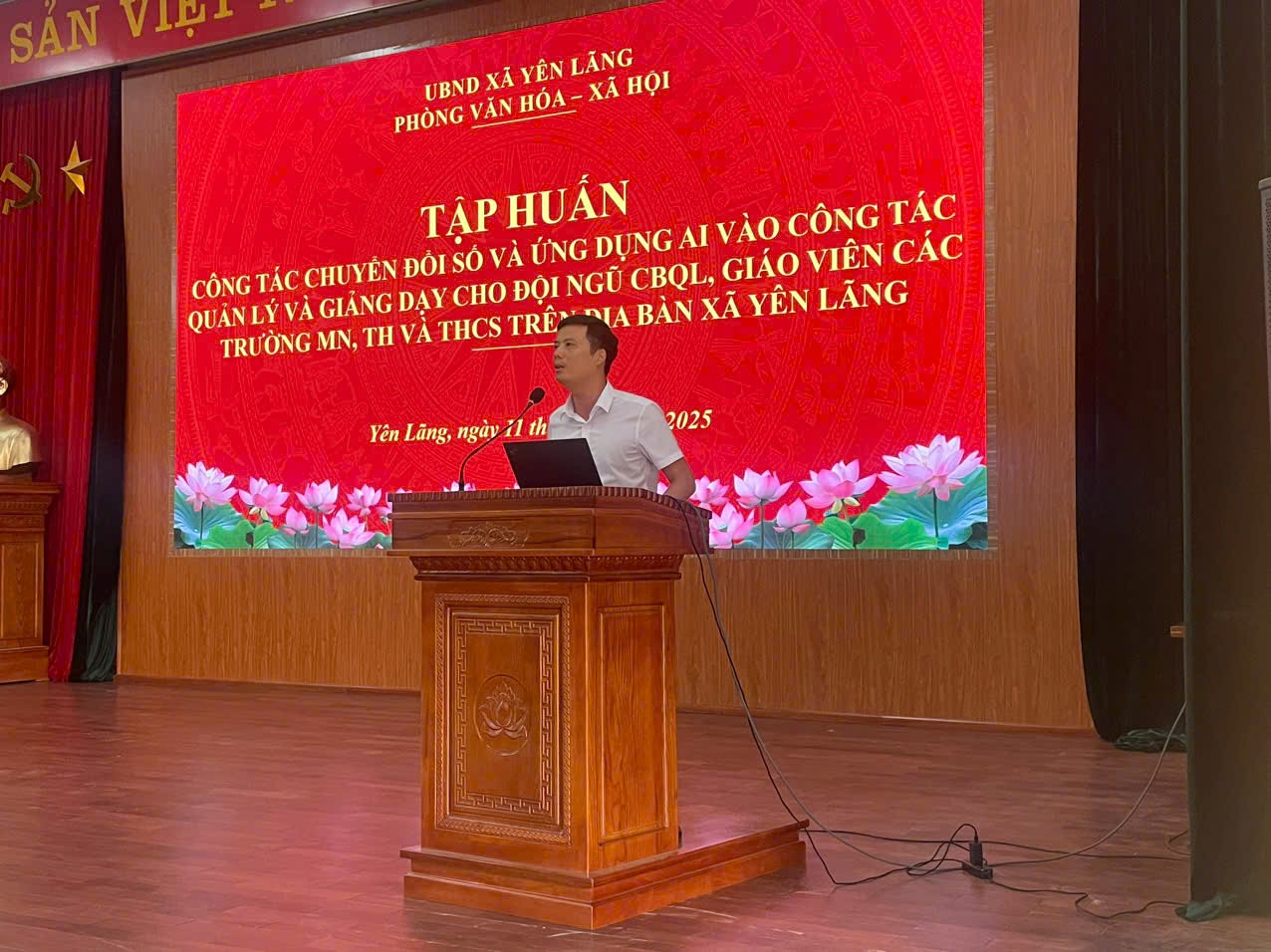 Phát biểu khai mạc buổi tập huấn, đại diện lãnh đạo UBND xã Yên Lãng đã nhấn mạnh tầm quan trọng của việc cập nhật công nghệ trong bối cảnh hiện nay: “Chuyển đổi số không chỉ là xu hướng tất yếu mà còn là nhiệm vụ trọng tâm nhằm nâng cao hiệu quả quản lý, giảng dạy và học tập. Việc ứng dụng trí tuệ nhân tạo sẽ giúp đội ngũ giáo viên và cán bộ nhanh chóng thích ứng với môi trường giáo dục hiện đại, đổi mới phương pháp làm việc và nâng cao chất lượng dạy học.” Lãnh đạo xã kỳ vọng chương trình sẽ là bước đột phá, trang bị những công cụ hữu ích để đội ngũ nhà giáo tự tin bước vào kỷ nguyên số.
