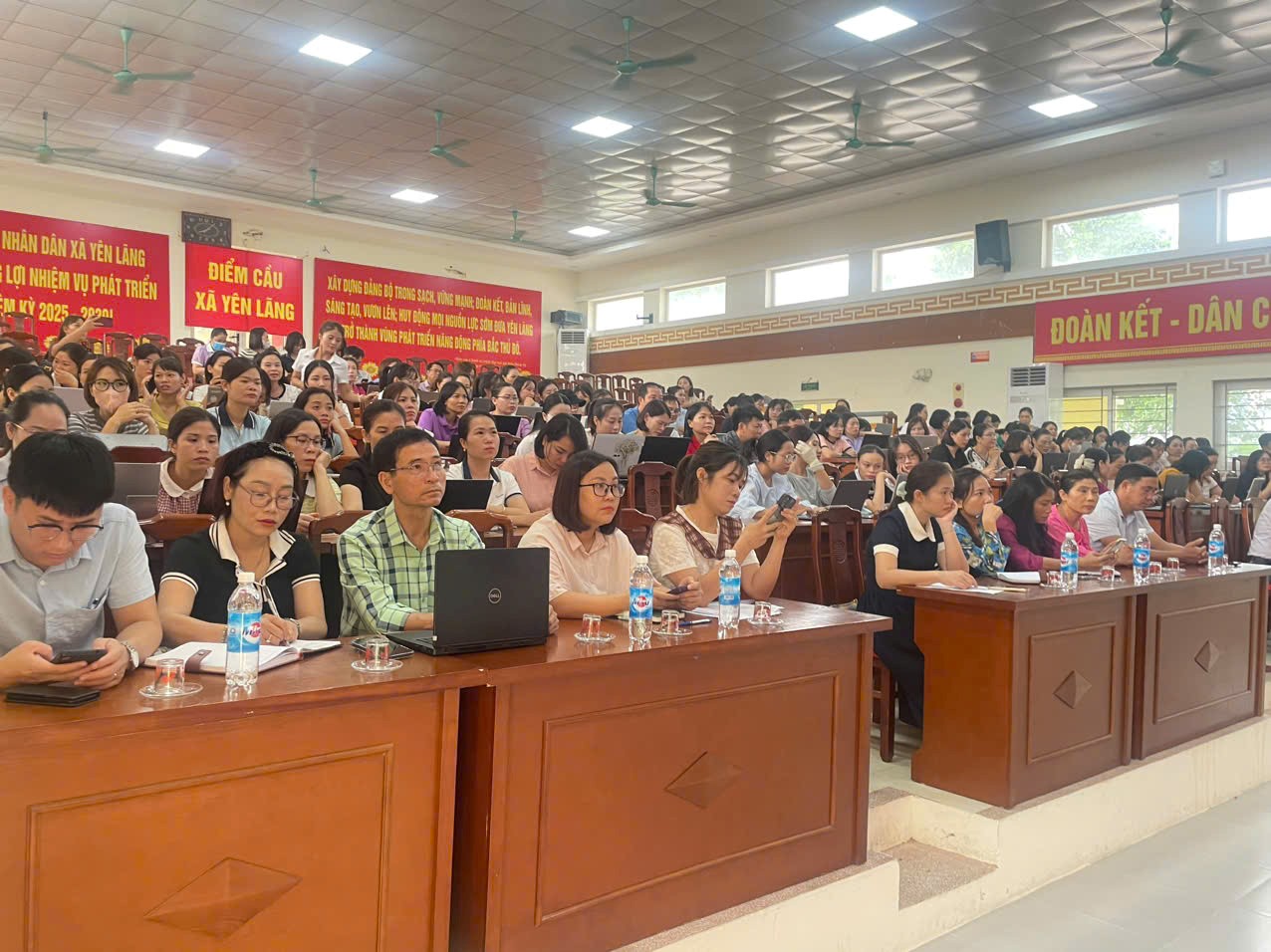 Toàn cảnh buổi tập huấn với sự tham gia của đông đảo cán bộ, giáo viên xã Yên Lãng.